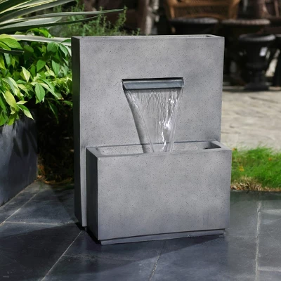 - Sleek Modern Design with Planter: This contemporary outdoor water fountain features a built-in planter, blending natural greenery with the soothing sight and sound of cascading water.