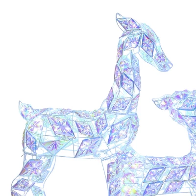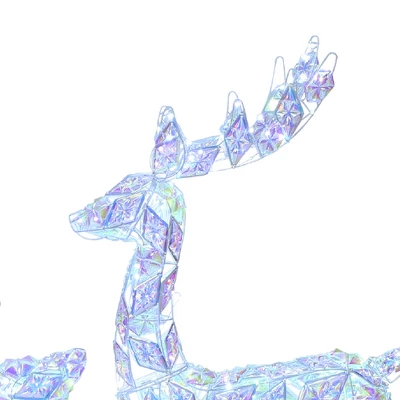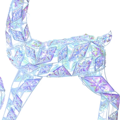 - Diamond-Cut Iridescent Design: Each deer is wrapped in diamond-cut snowflake panels that shimmer in rainbow hues, creating a dazzling holiday display.