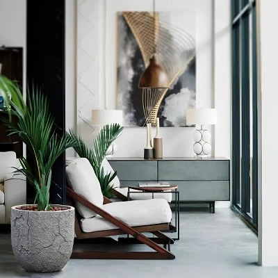 Featuring a rustic crackle-texture pattern, this mid-century modern flowering planter will elevate your medium to large houseplants. Crafted from durable magnesium oxide material, the planter is lightweight yet sturdy for easy transport. In addition, the weather-resistant capability empowers flexibility to place your plant indoors and outdoors according to the seasons and demand. Place this planter next to your living room sofa, deck, or porch, and use it to house your favorite real or artificial plant. Features: . . . To help prevent the over-watering of plants, the planter includes a drainage hole. . Care: . Place the planter on flat ground or surface; it is best if the planter is not left in standing water or snow for extended periods; standing water or snow may cause damage to the base of your planter. Specifications: Planter size: 14.57″ H x 14.57″ W x 14.57″ D Planter weight: 11.02 lbs. Planter potting capacity: 31.25 quarts..