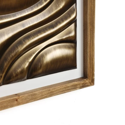Embarking on a journey to merge modern art with home decor, this gold metal abstract wall decor brings a touch of luxurious modernity to your living space with its unique design and materials. The wall hanging is primarily gold in color, with flowing wave shapes that give it a dynamic vitality. Its smooth lines and geometric shapes dance across the surface, creating a visual narrative of movement and energy. The 3D abstract design adds a sense of depth and dimension to the wall. The wood frame is crafted from a combination of fir wood and MDF, providing a sturdy and durable base, while contrasting with the metallic sheen to ground the piece in a sense of earthy authenticity. This wall art decor is an ideal choice for modern home decor, and whether hung in the living room, bedroom, or office, it becomes a focal point that captures attention, showcasing your unique artistic taste and lifestyle.