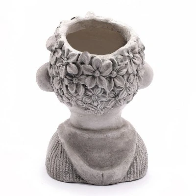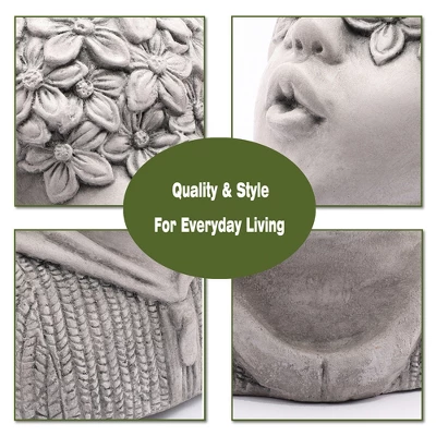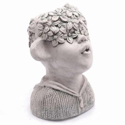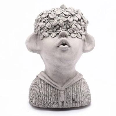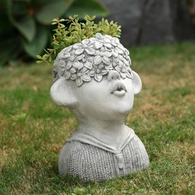 This kissing flower child bust planter makes a great decoration piece for your faux and real flowers and plants. This decorative statue bust-style planter can be styled with a fun plant, real or fake, depending on the sunlight in your home. It can also be a decorative piece on its own without a plant. Place the flower child bust planter on a bookcase in your office or family room, or spruce up your porch with its unique charm. Crafted using weather and UV-resistant magnesium oxide material, the bust planter is ready for outdoor living. It includes a drainage hole to help prevent over-watering your plants. It also includes a drainage plug for your convenience.