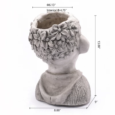 - Overall planter statue size is 13.88-in H x 8.88-in W x 9-in D