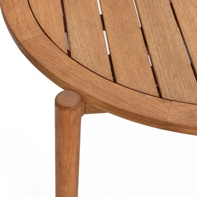 Bring the relaxed lifestyle of tropical islands to your garden and backyard with this round outdoor coffee table. Crafted from carefully selected natural solid wood and mixed hardwood materials, it brings a touch of nature and warmth to your outdoor spaces, such as decks and patios. The high-quality wood ensures the table’s sturdiness and durability, while its natural wood color adds a simple and elegant beauty. The table features a unique slatted wood design that enhances visual depth and provides a stable surface for placing drinks, magazines, or decorative items. The design of four cylindrical legs not only offers stable support but also gives the coffee table a modern and elegant appearance. The assembly process of this coffee table is simple and quick, allowing you to enjoy the pleasures of outdoor leisure easily. Whether enjoying an afternoon coffee on the terrace or as the centerpiece of a garden gathering, this coffee table seamlessly blends into various settings, making it an ideal companion for outdoor living. At the same time, its graceful design also makes it an elegant embellishment in indoor spaces.