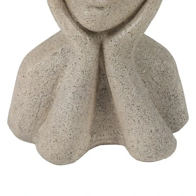 This unique, happy person bust planter makes a great decoration for your faux and real flowers and plants. This decorative statue bust style planter can be styled with a fun plant, real or faux, depending on the sunlight in your home. It can also be a decorative piece on its own without a plant. The statue planter is an artistic bust with hands framing the face, and the top of the head is a planter. Place the blissful bust planter on the bookcase in your office or family room, or spruce up your porch with its unique charm. Crafted using weather and UV-resistant magnesium oxide material and finished in a speckled beige finish, the bust planter is ready for outdoor living. It includes a drainage hole to help prevent over-watering your plants. It also includes a drainage plug for your convenience. Features:ย 1-Piece person bust planter statue that makes a fun and unique addition to your indoor and outdoor space. . . The bust planter is weather, UV, and rust resistant, and is easy to maintain – simply rinse with water and wipe with a soft cloth between plantings. The planter is suitable for display indoors and outdoors; for longevity, do not allow the planter to sit in standing water or snow as this may cause damage to the bottom of the statue planter. Add your favorite plant to the statue planter pot and give it as a housewarming or holiday gift to your family or friends. . Each planter pot also includes a drainage plug for convenience and is ideal when displaying artificial plants or faux floral arrangements and bouquets. . To clean, gently rinse with water and use a soft cloth to wash your planter. Rinse with clean water and allow air to dry or dry with a clean cloth. Place the planter on flat ground or surface. It is best if the planter is not left in standing water or snow for long periods. Standing water or snow may cause damage to the base of your planter. Planter specifications:ย Statue planter size: 14.13″ H x 10.25″ W x 6.88″ Dย Statue planter weight: 4.2 lbs. Statue planter capacity (ounces): 255..