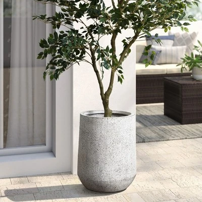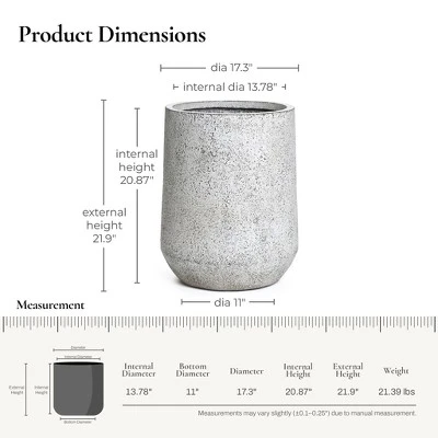 This tapered round planter features a beautiful gray and white speckled texture, making it an excellent choice for both indoor and outdoor settings. Crafted from lightweight yet durable MgO material, it combines practicality with aesthetics. The unique speckled design harmonizes nature with modern style, showcasing an artistic flair that enhances any space. Its conical shape is not only visually appealing but also space-efficient, allowing for greater flexibility in arranging your greenery. The planter can be used individually or paired with other planters and decor, accommodating plants of various sizes easily. Additionally, the drainage hole at the bottom promotes a healthy environment for your plants, ensuring their well-being whether used as a decorative accent indoors or a standout feature in your garden. Overall, this planter seamlessly integrates modern design into your home, elevating its overall aesthetic.